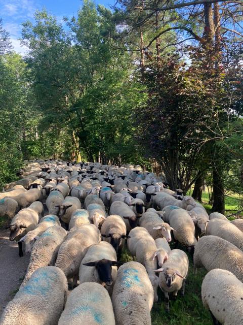 Die Schwarzkopf-Schafherde von Oliver Schwab auf dem Heimweg