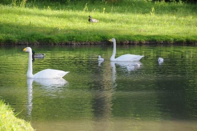Singschwan-Orchester: Vier junge Singschwäne in Umkirchs Queen-Auguste-Victoria-Park!  6354  18.05.2012