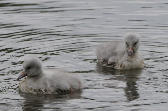 Schwanengeburt: Vier junge Singschwäne in Umkirchs Queen-Auguste-Victoria-Park
