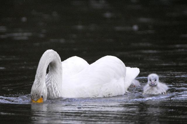 Schwanengeburt: Vier junge Singschwäne in Umkirchs Queen-Auguste-Victoria-Park